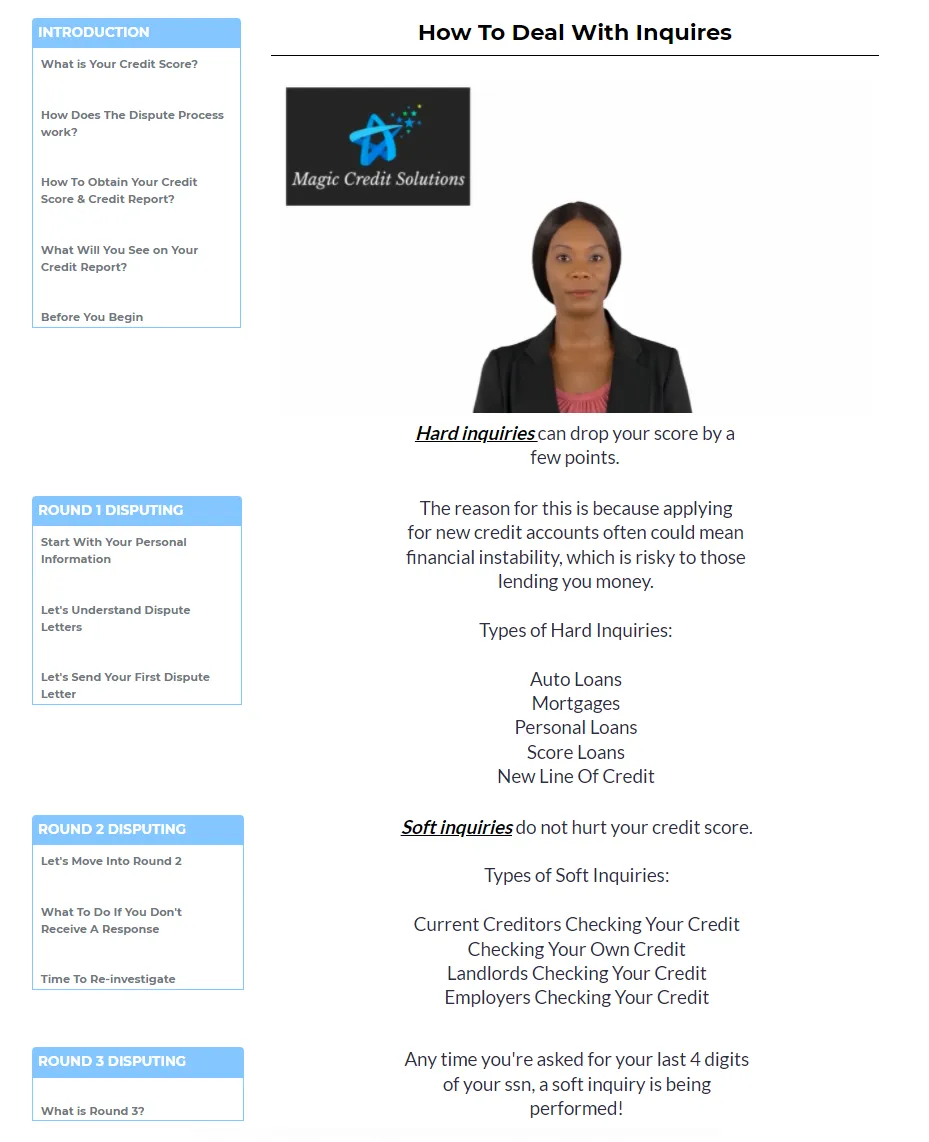 You get access to a step by step academy that will walk you through how to fix your credit.